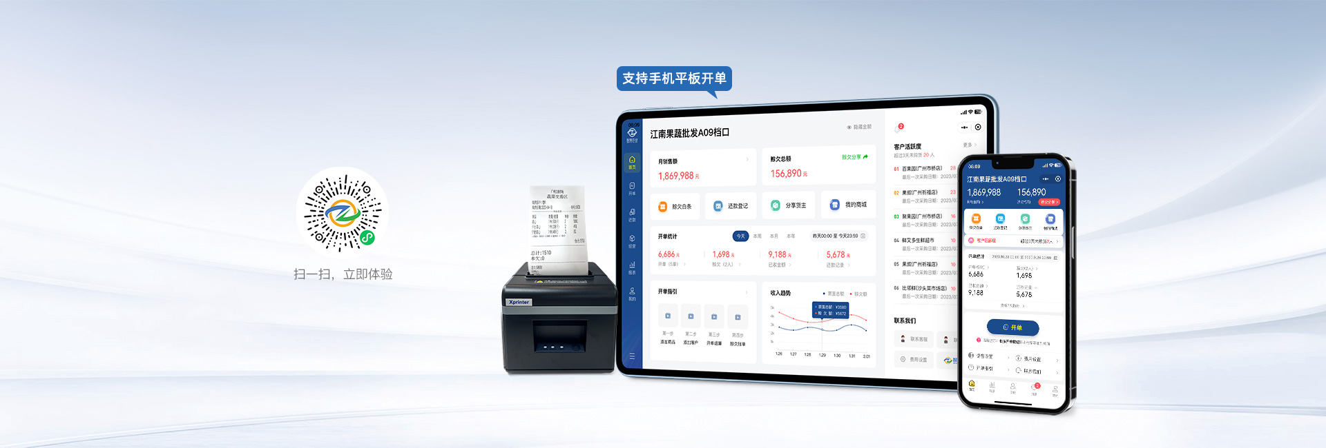 快速开单选择客户,选择商品,确认收银,三个步骤快速完成开单; 收银台可设置"优惠"、"多收"以及"取整",还可以同步打印销售单。 |