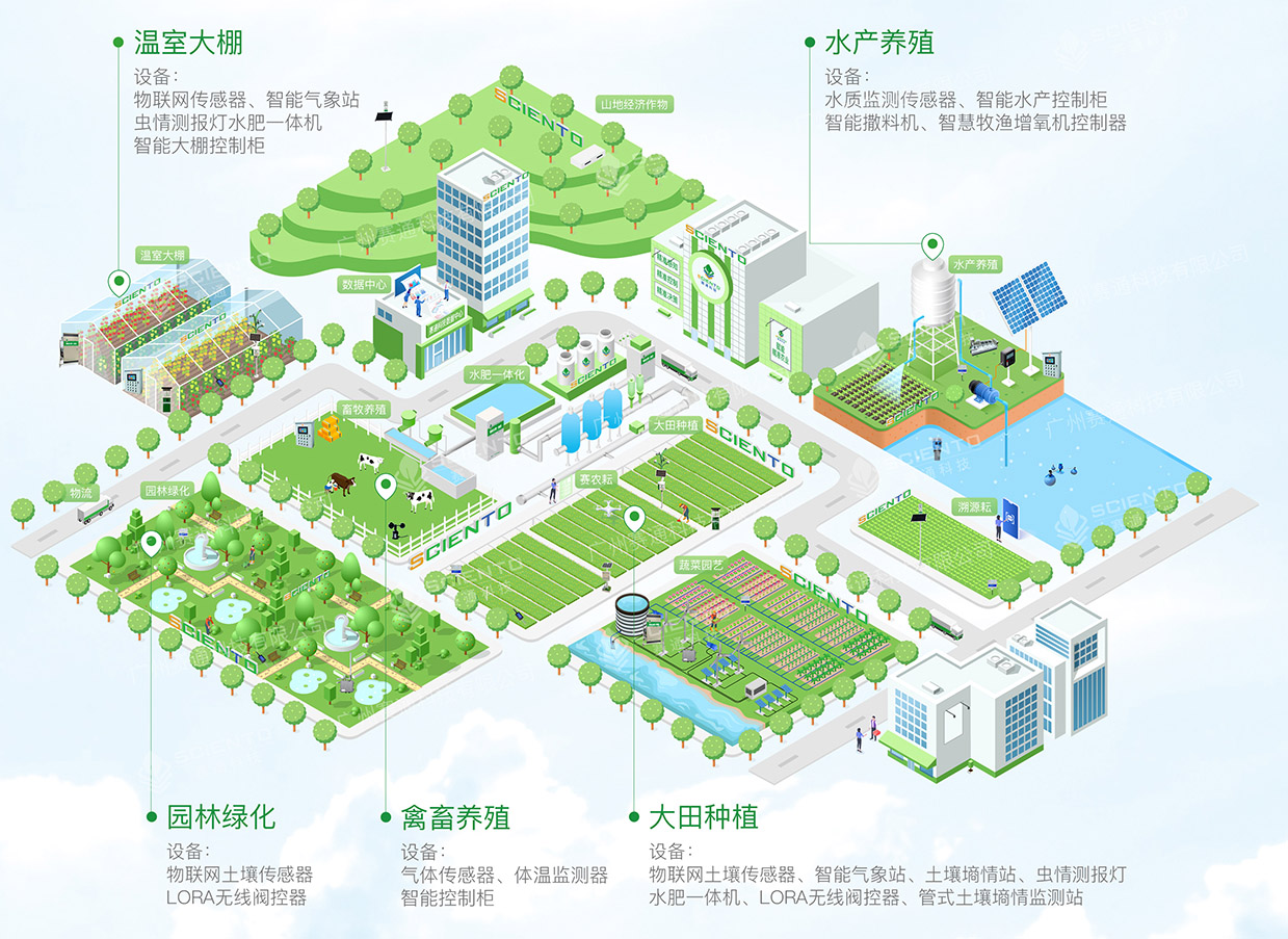 通过赛通科技气象环境监测设备、水肥灌溉设备、大棚控制设备、虫情测报设备等实施有效现场干预,以“精准定时、定位、定量控制”全方位助力各类农业生产场景的智慧化、数字化。