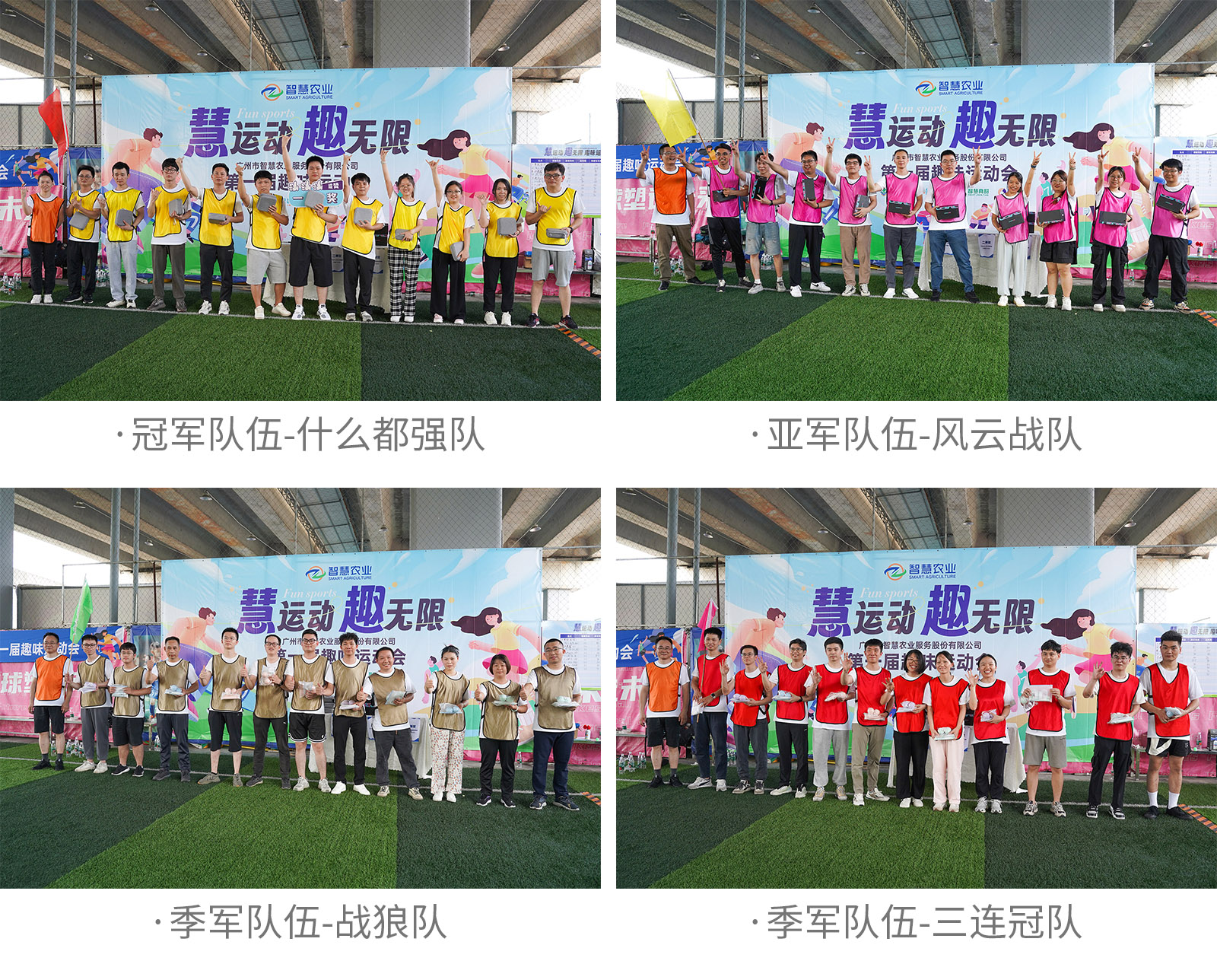 在激烈角逐中,智慧农业第一届趣味运动会画上圆满句号,此次赛事共诞生了一支冠军队伍、一支亚军队伍以及两支并列的季军队伍。